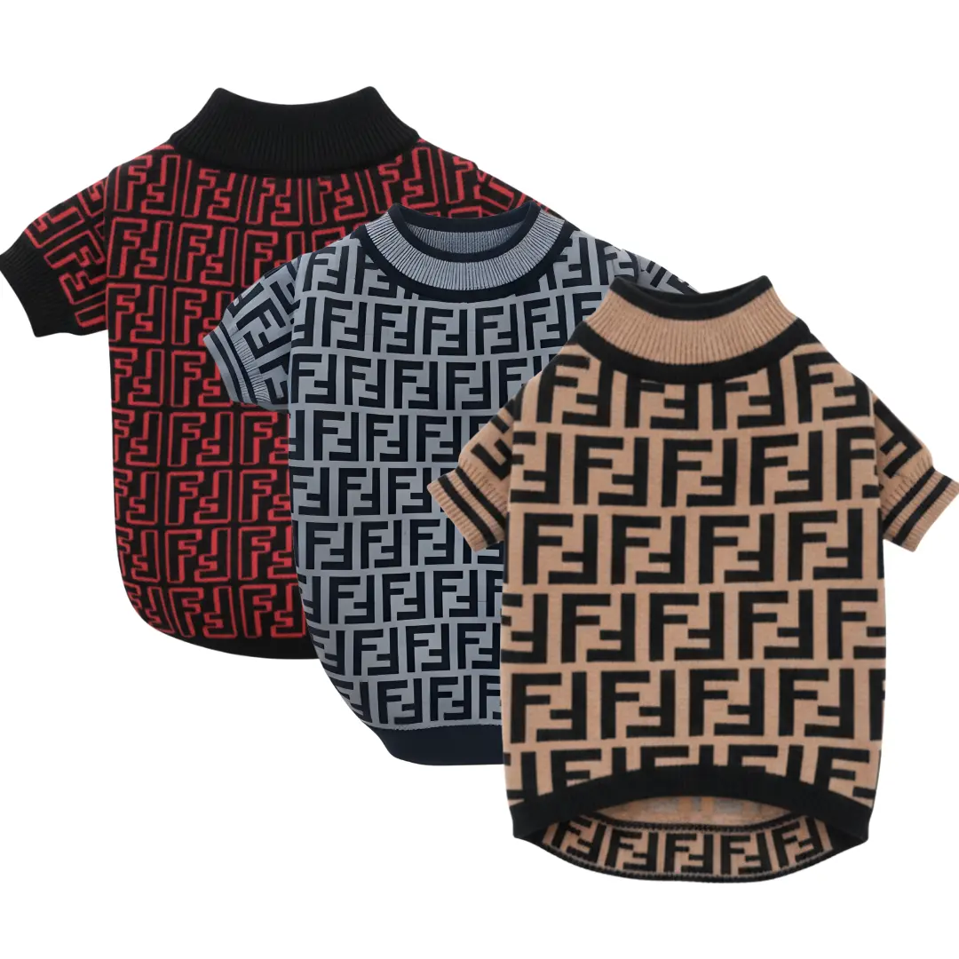 COMBO de 3 Piezas de camisa para mascota Ropa para perro Fendi – (rojo, gris, marron) XL