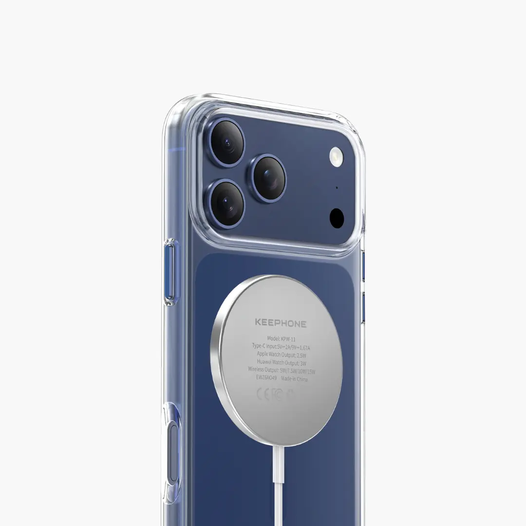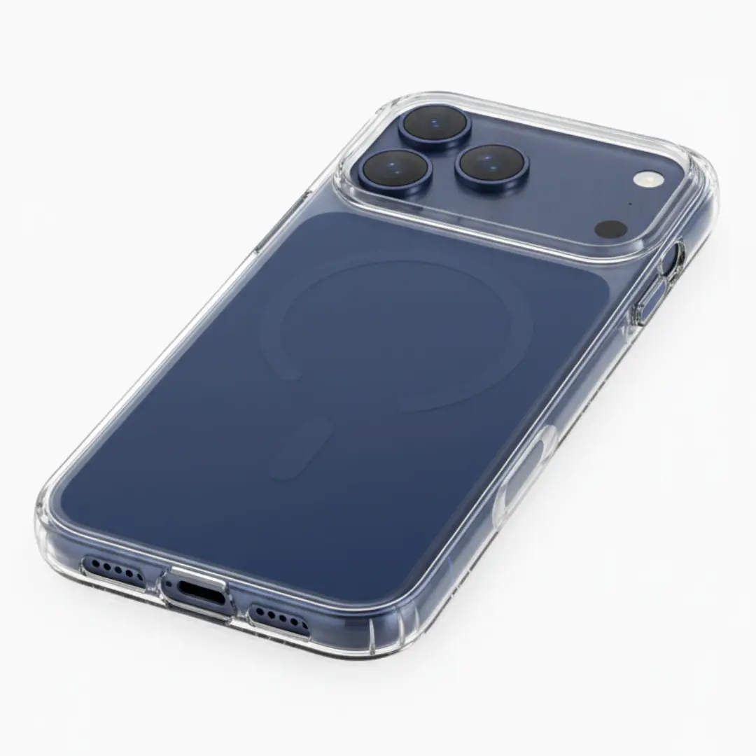 Descubre la REBECCA MagSafe Case para iPhone 17 Pro Max: ultra-slim, anti-amarilleo y con imanes N52 de 3500 Gauss. Funda clara MagSafe delgada con botones metálicos y protección total contra rayones.