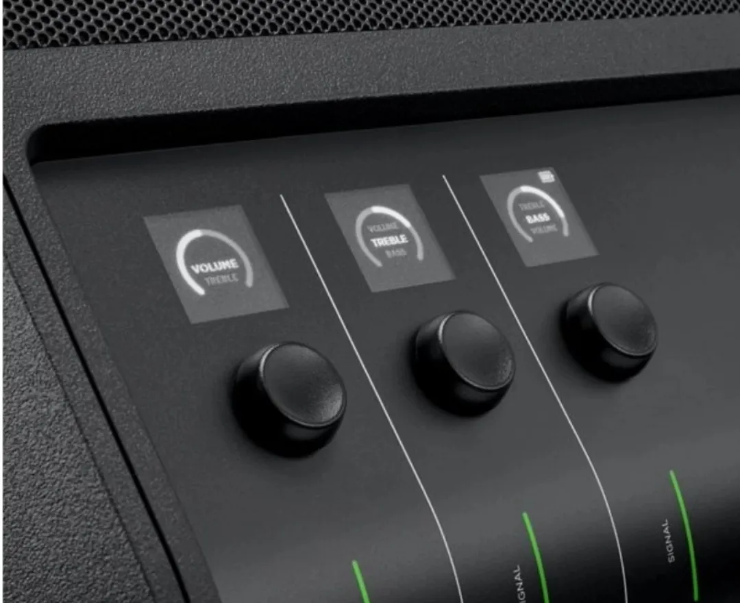 - Un transductor de neodimio de alta excursión y un deflector acústico especialmente diseñado ofrecen un sonido potente y equilibrado que llena cualquier espacio con música, voces y efectos de sonido realistas.