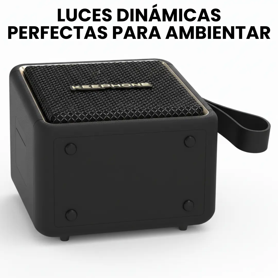 Parlante Bluetooth Keephone MusicPod Mini de 20W con sonido potente, bajos profundos, Bluetooth 5.3, luces RGB y batería recargable. Ideal para llevar a cualquier lugar.