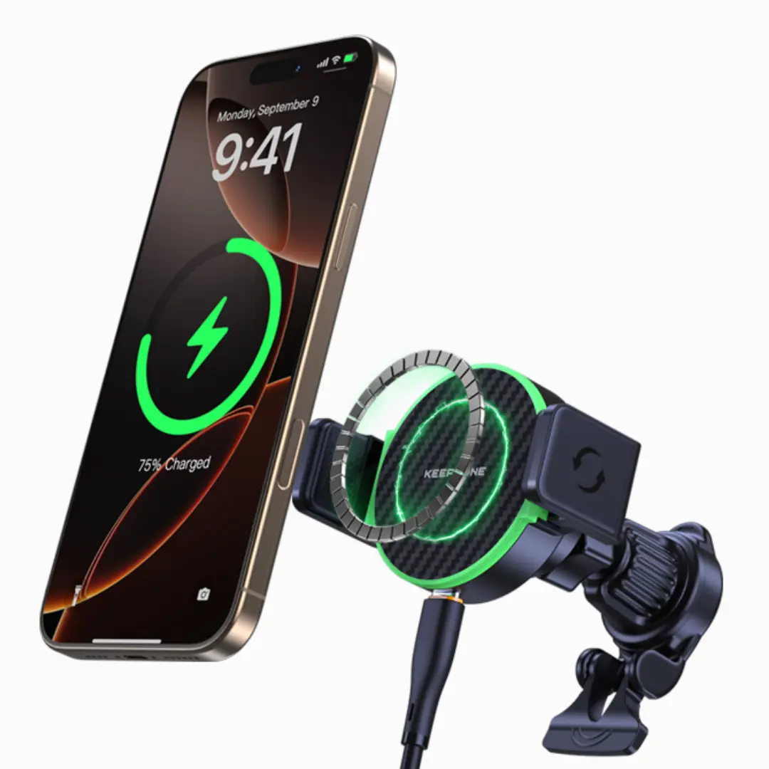 El holder magnético para carro con fibra aramida y luz LED es el accesorio indispensable para quienes buscan calidad, estética y funcionalidad. Con carga inalámbrica rápida y ajuste cómodo, transforma tu experiencia de manejo.